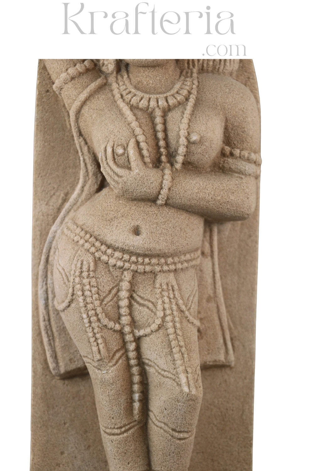 The artwork is characterized by its high relief carving, elaborate ornamentation, and dynamic depiction of human and divine forms. Common themes include deities from Hindu and Jain pantheons, celestial beings (apsaras, gandharvas), mythological narratives, and scenes from daily life. A hallmark of these sculptures is their sensuous beauty, fluidity of form, and symbolic representation of cosmic principles.