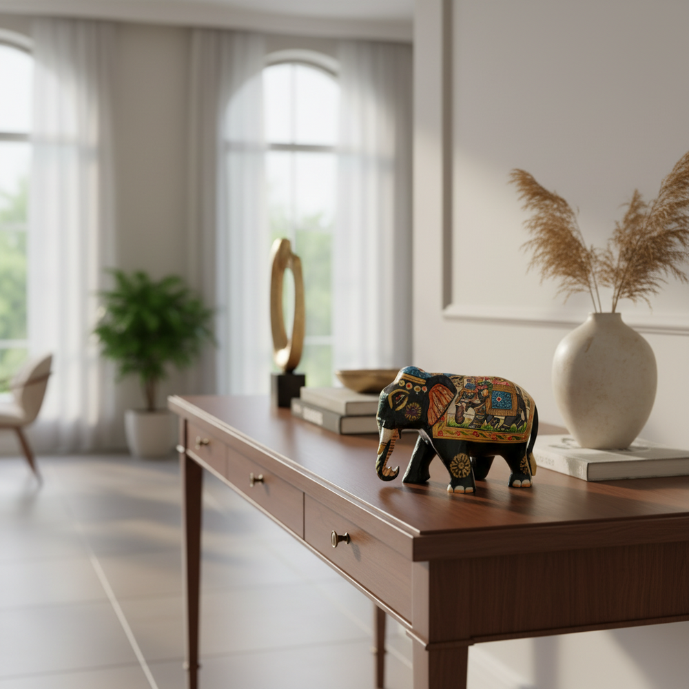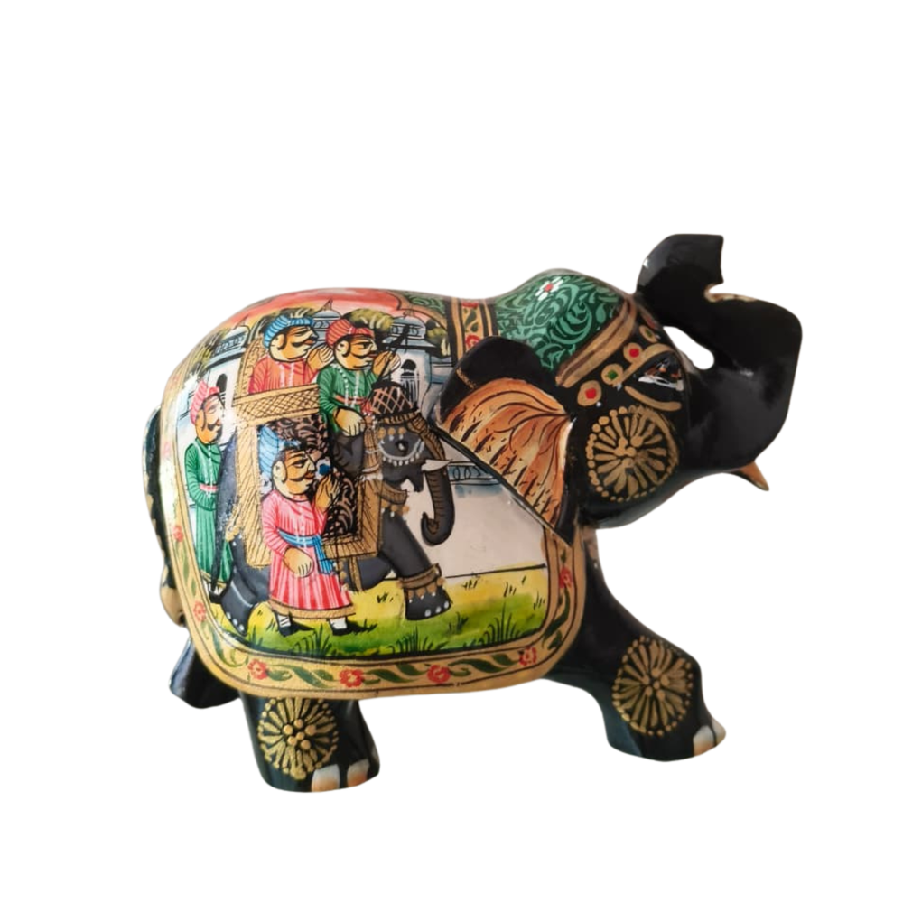 Rajasthani Wooden Black Hand Painted Mughal Elephants