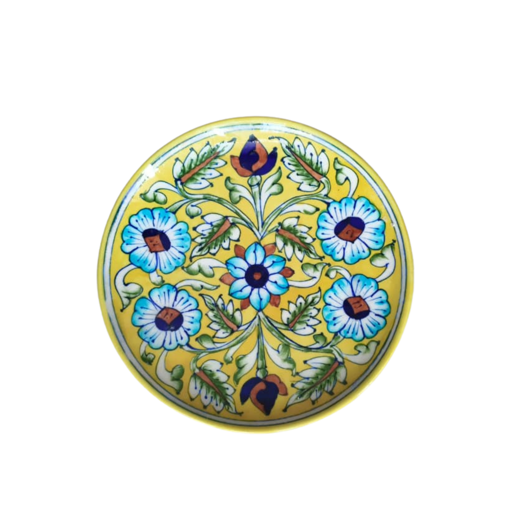 Blue Pottery of Rajasthan is one of India’s most distinctive and visually captivating traditional crafts, known for its striking cobalt blue designs and intricate floral motifs. Originating in Jaipur, this art form beautifully fuses Persian, Turkish, and Mughal influences, creating a timeless legacy of glazed ceramic work. Unlike other pottery styles, Blue Pottery is made from a unique quartz-based composition instead of traditional clay, making it lighter and more delicate. Artisans use a blend of quartz stone powder, glass powder, Multani mitti (Fuller’s earth), gum, and water to create the base, which is then glazed and fired at a low temperature.