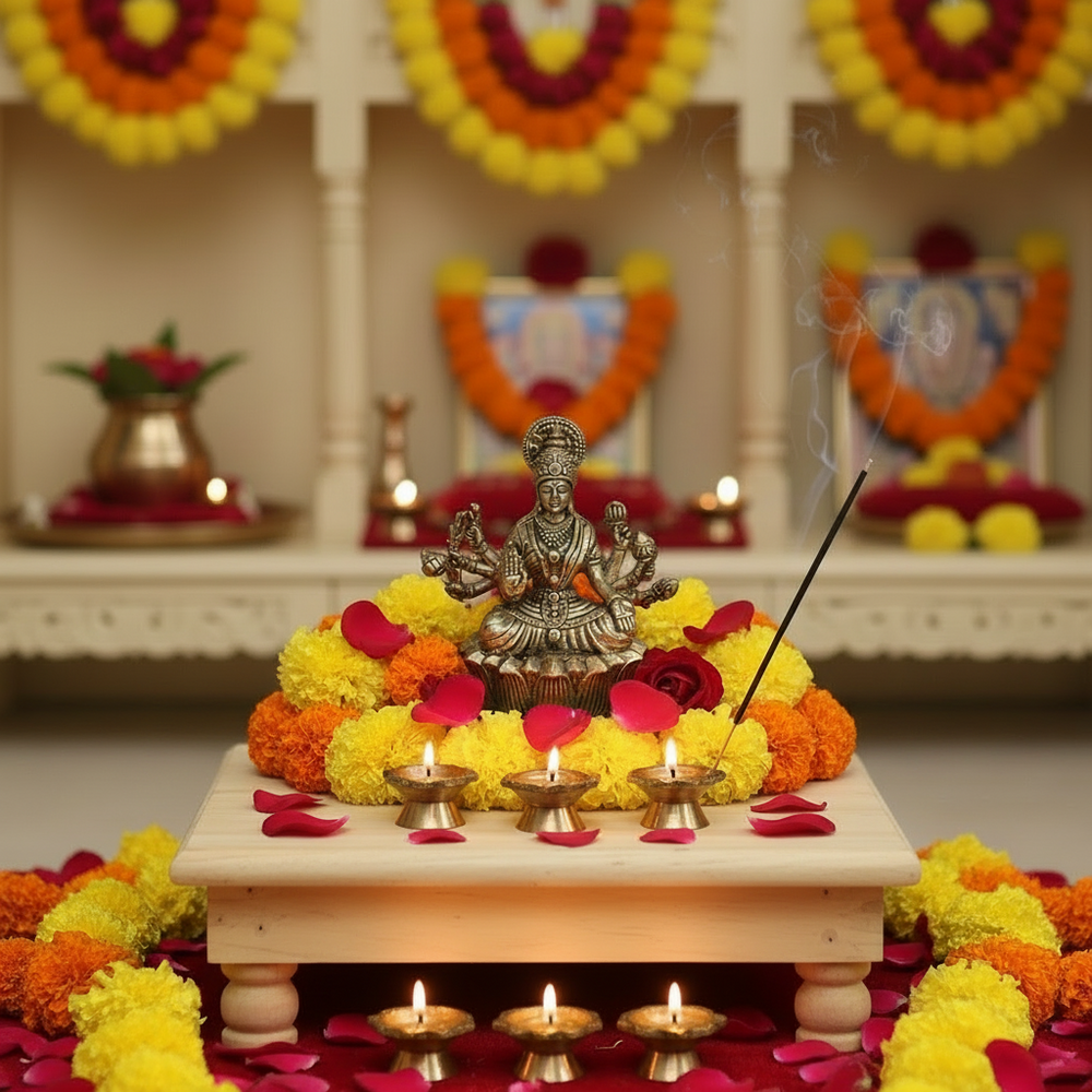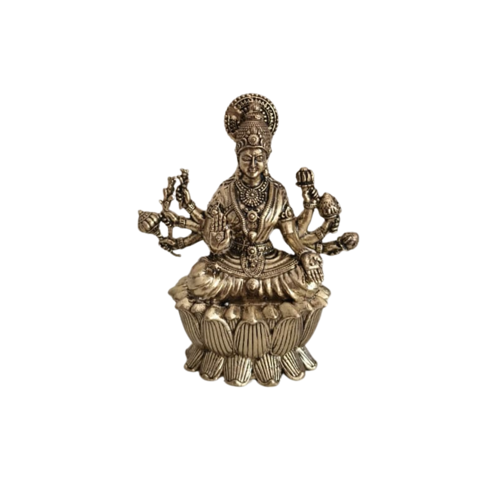 Brass Ashta Lakshmi Idol Seated on Lotus - Eight-Armed Goddess