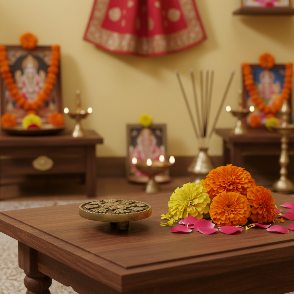 Brass Decorative Pedestal Stand - Round Ritual Holder