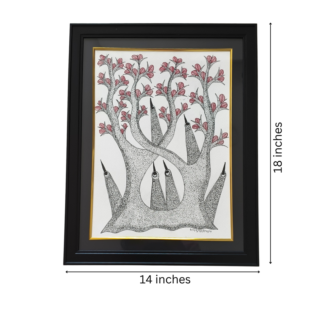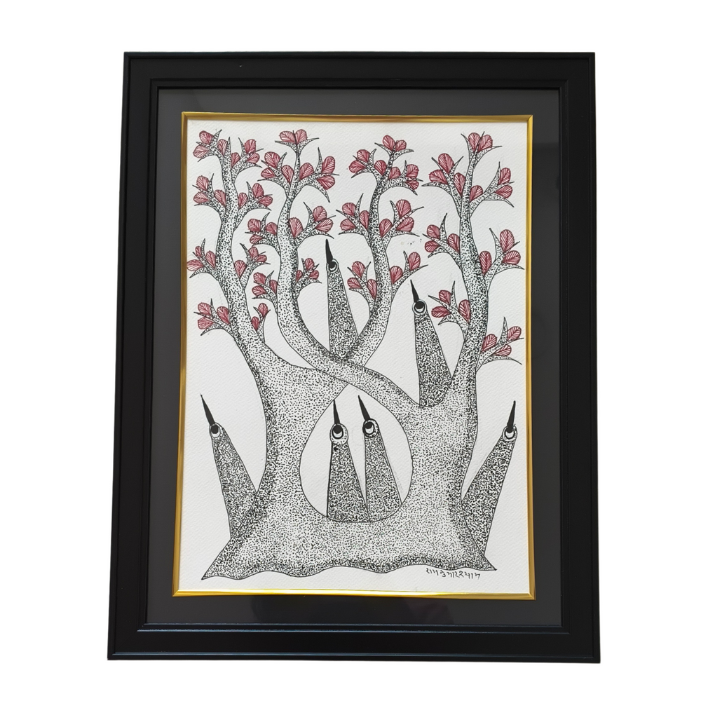 Gond Art, a vibrant and intricate form of tribal painting, originates from the Gond tribe, one of the largest indigenous communities of central India, particularly concentrated in the Dindori district of Madhya Pradesh. Traditionally drawn on walls and floors during festivals and rituals, Gond art has evolved into a celebrated form of contemporary folk expression, especially since the late 20th century.