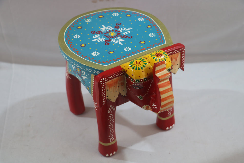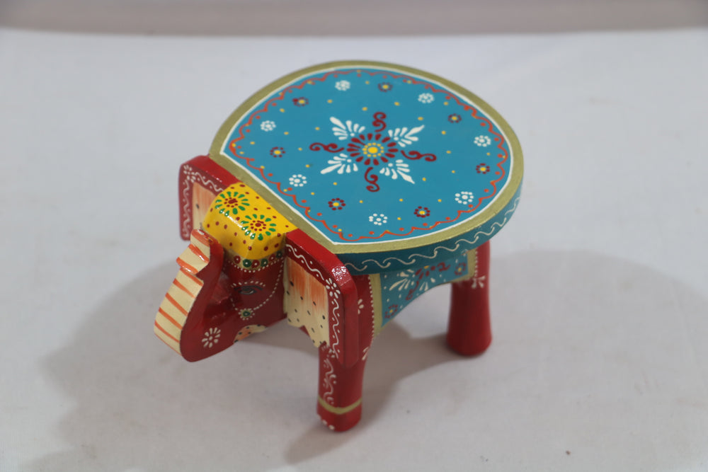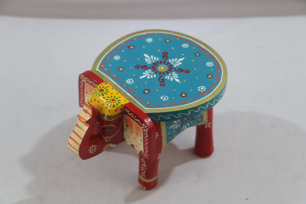 Hand-carved and Hand-Painted Wooden stool with intricate design