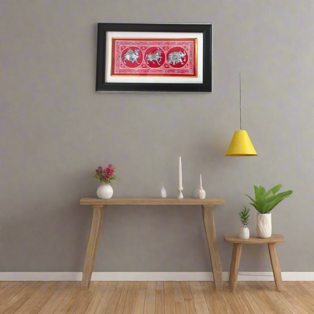 Rajasthani Painting is a rich and vibrant style of Indian miniature painting that flourished in the royal courts of Rajasthan from the 16th century onwards. Deeply rooted in Indian traditions, it portrays themes of mythology, epics, love stories, royal life, and folk culture. The paintings are known for their bold lines, bright colors, and intricate detailing. Natural dyes and pigments made from minerals, vegetables, and precious stones were traditionally used, which gives the art a lasting and luminous quality.