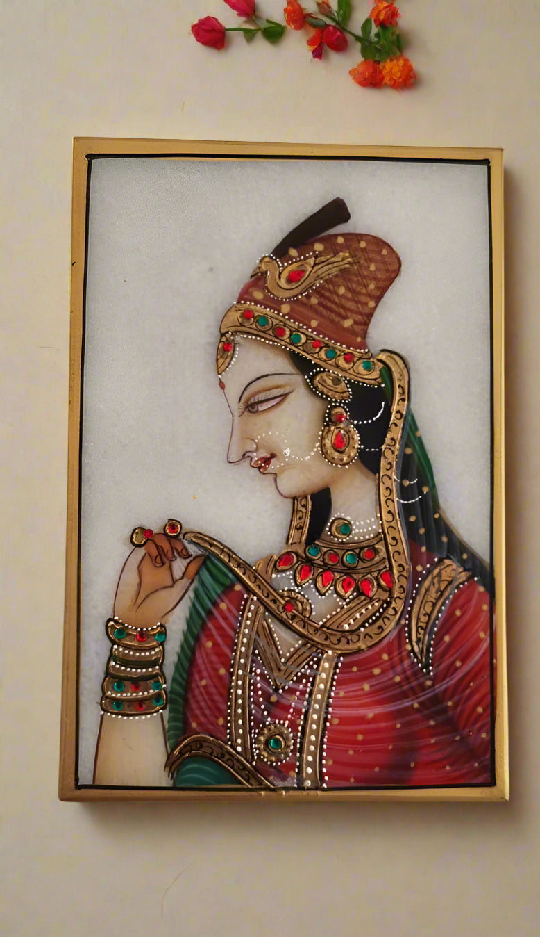 Marble Rajasthan painting is a traditional Indian art form that beautifully combines the elegance of marble with the rich heritage of Rajasthani miniature and folk painting styles. These paintings are usually crafted on marble tiles, plates, or decorative pieces using vibrant natural colors, gold foil, and intricate detailing. Originating from the royal courts of Rajasthan, this art form reflects the grandeur and opulence of Rajput culture.