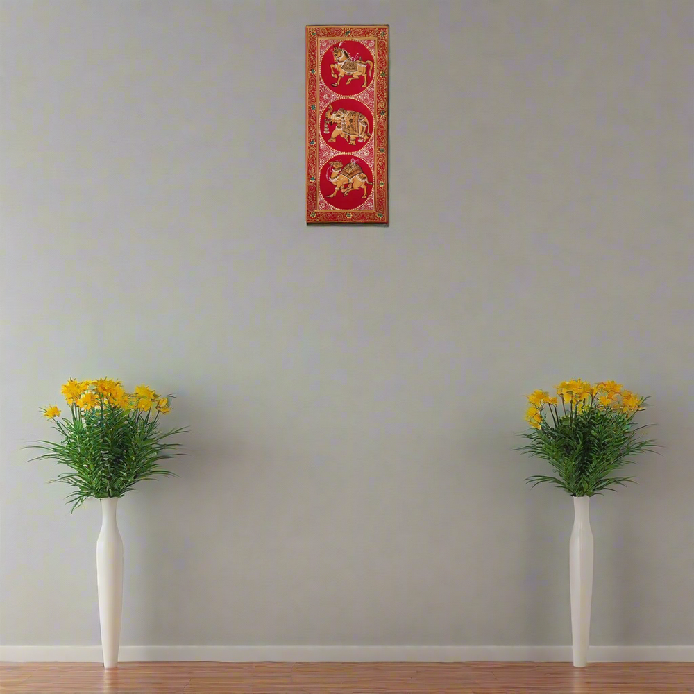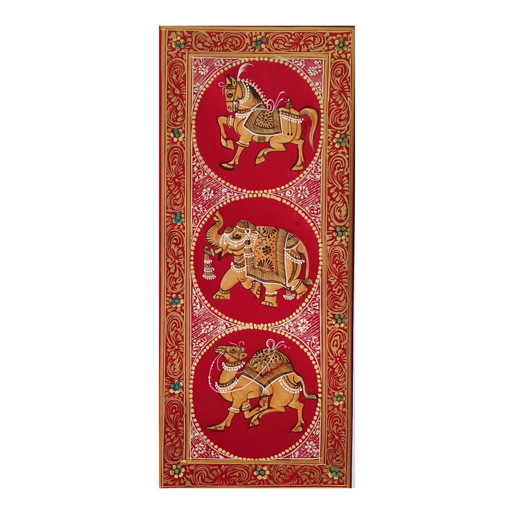 Rajasthani Painting is a rich and vibrant style of Indian miniature painting that flourished in the royal courts of Rajasthan from the 16th century onwards. Deeply rooted in Indian traditions, it portrays themes of mythology, epics, love stories, royal life, and folk culture. The paintings are known for their bold lines, bright colors, and intricate detailing. Natural dyes and pigments made from minerals, vegetables, and precious stones were traditionally used, which gives the art a lasting and luminous quality.