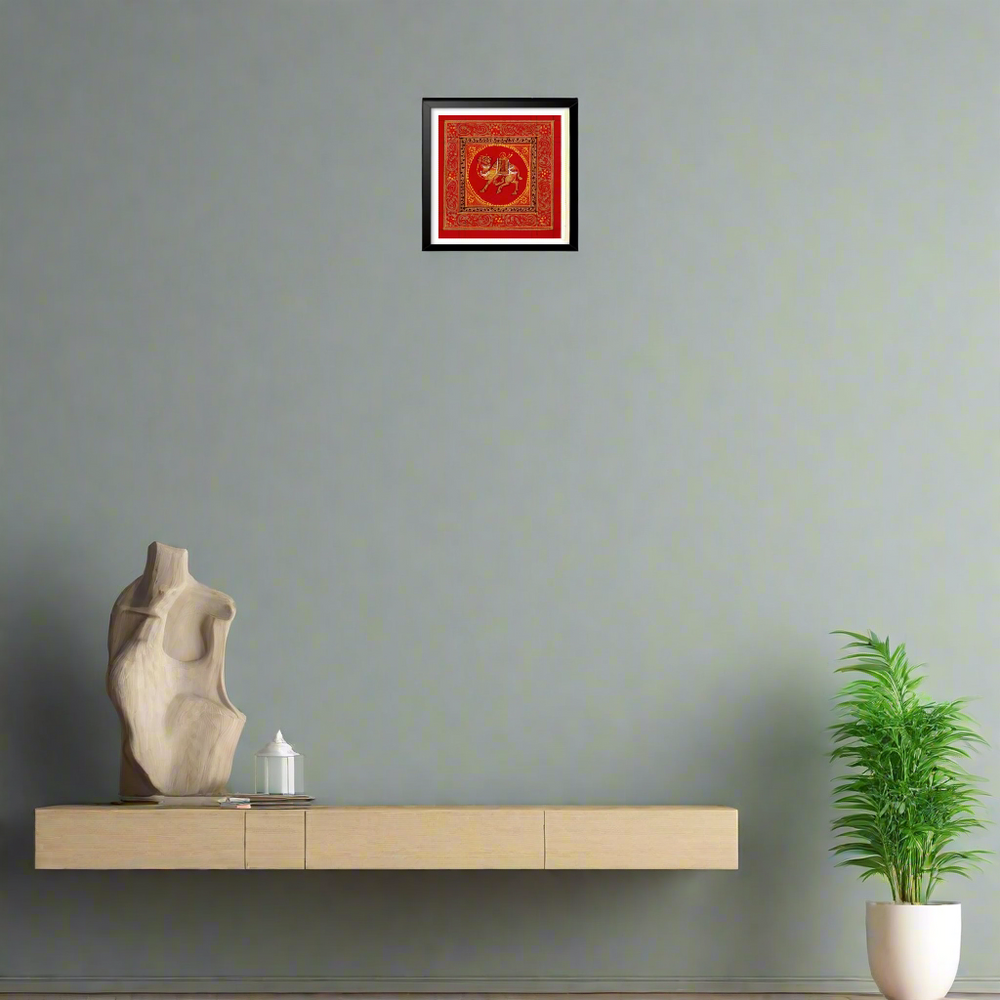 Rajasthani Painting is a rich and vibrant style of Indian miniature painting that flourished in the royal courts of Rajasthan from the 16th century onwards. Deeply rooted in Indian traditions, it portrays themes of mythology, epics, love stories, royal life, and folk culture. The paintings are known for their bold lines, bright colors, and intricate detailing. Natural dyes and pigments made from minerals, vegetables, and precious stones were traditionally used, which gives the art a lasting and luminous quality.