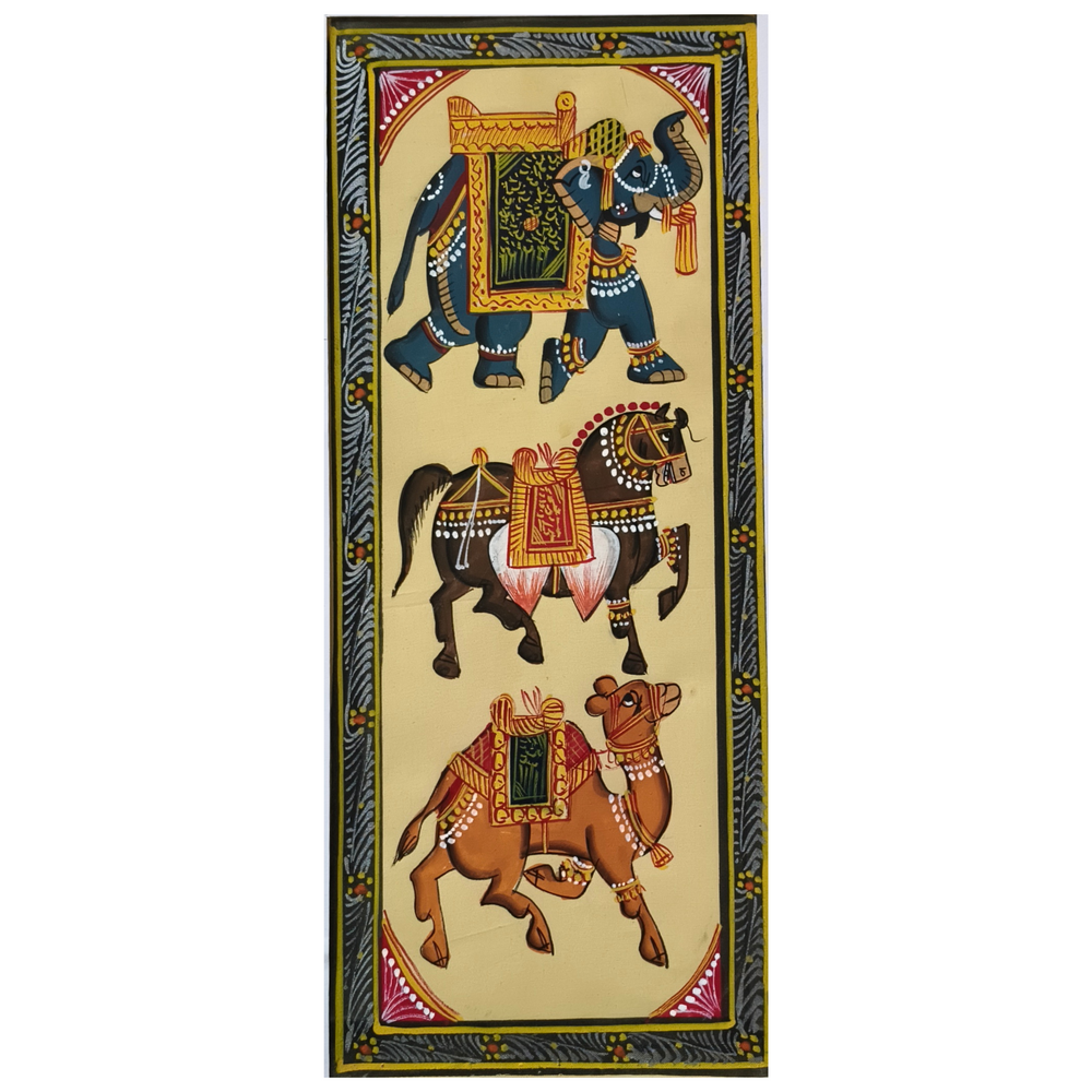 Rajasthani Painting is a rich and vibrant style of Indian miniature painting that flourished in the royal courts of Rajasthan from the 16th century onwards. Deeply rooted in Indian traditions, it portrays themes of mythology, epics, love stories, royal life, and folk culture. The paintings are known for their bold lines, bright colors, and intricate detailing. Natural dyes and pigments made from minerals, vegetables, and precious stones were traditionally used, which gives the art a lasting and luminous quality.