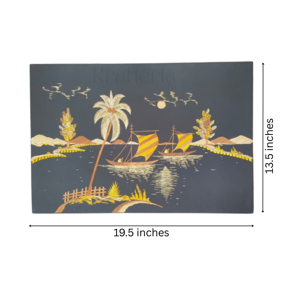 Artisans meticulously cut, shape, and paste thin strips of straw onto a base, forming detailed images of Kerala’s landscapes, temples, animals, Kathakali dancers, and scenes from village life. The straw’s natural sheen and golden hue lend the finished piece a subtle, elegant glow.