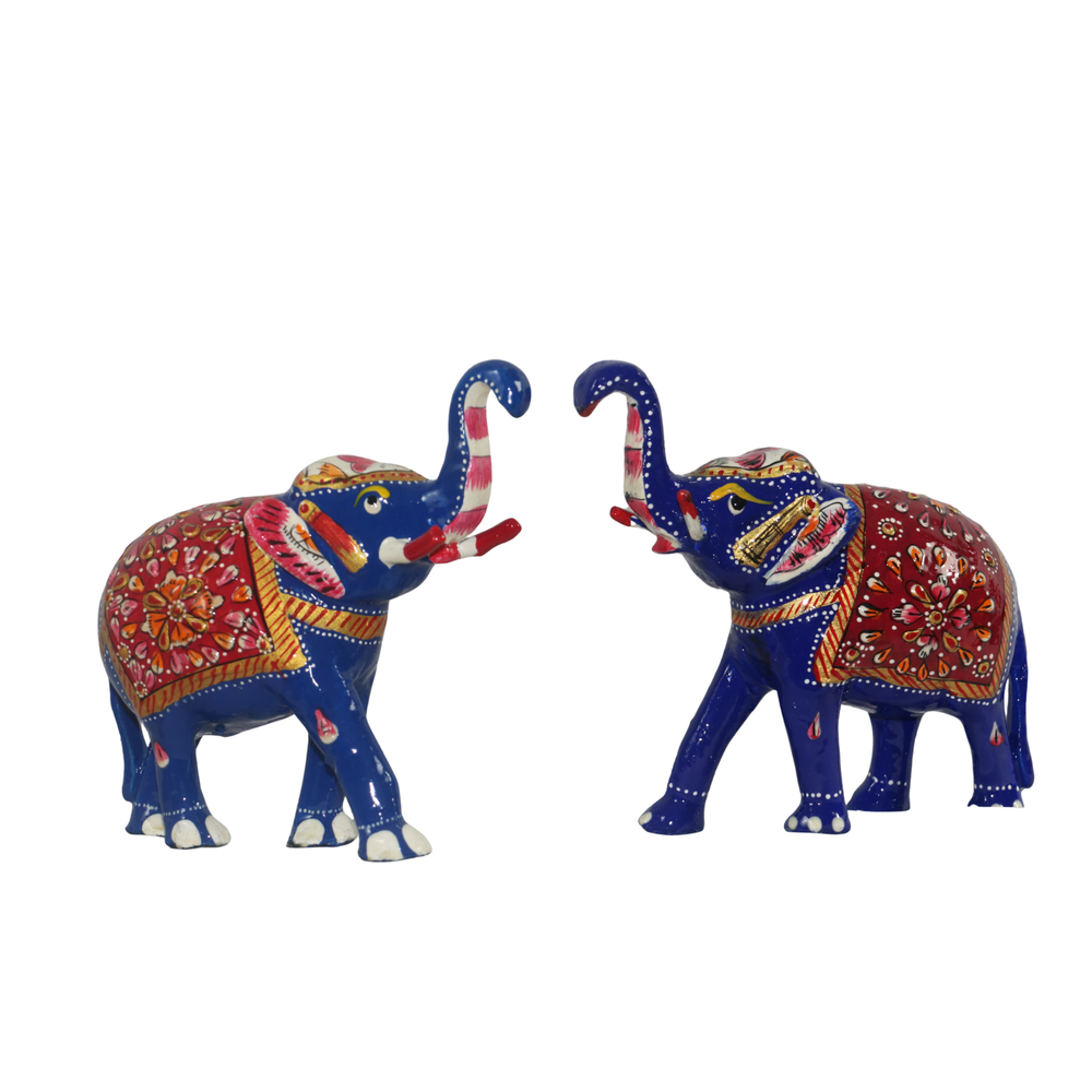 Metal Hand Painted Elephant Pair Meenakari Rajasthani