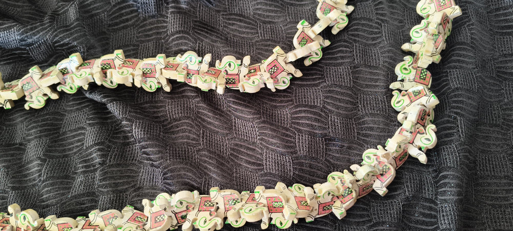 The traditional motifs often include floral designs, animals, birds, and geometric patterns. Bright red, yellow, green, and black are commonly used colors, which give the products their eye-catching appeal. The craft is both eco-friendly and sustainable, using locally sourced wood and non-toxic materials.