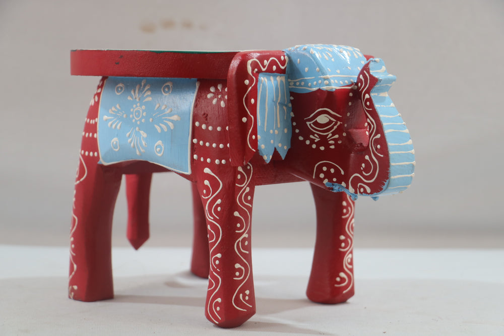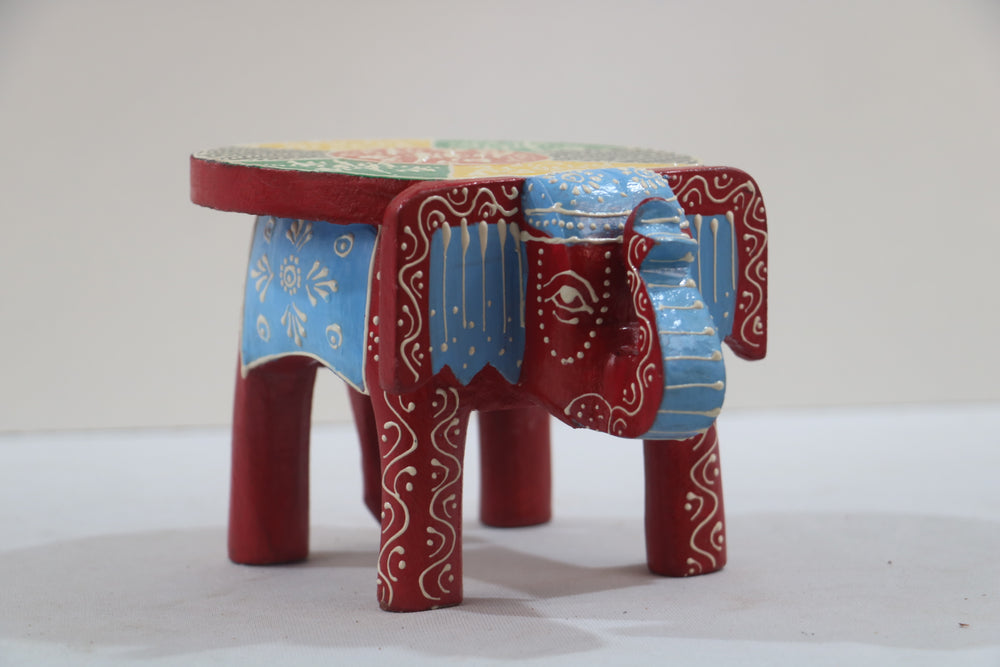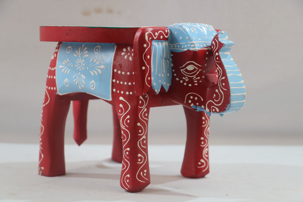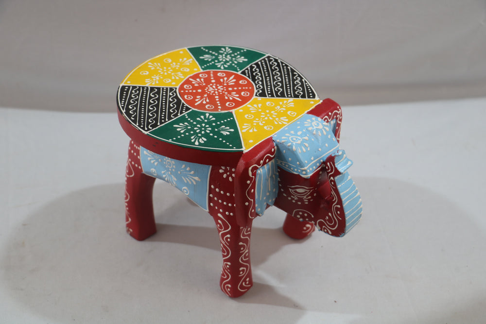 Hand-carved and Hand-Painted Wooden stool with intricate design