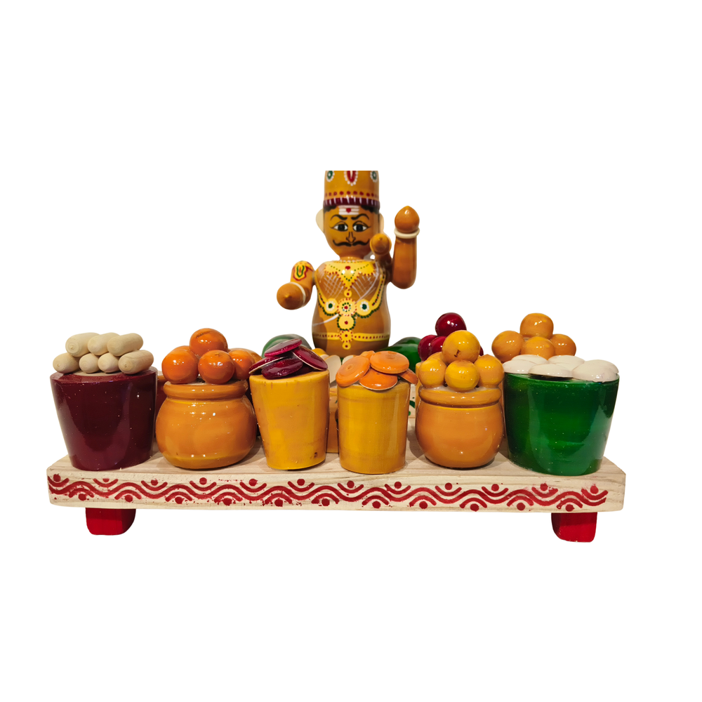 The hallmark of Etikoppaka craft lies in its eco-friendly process. The artisans use natural dyes derived from seeds, roots, and leaves, and coat the turned wooden objects with natural lacquer, applied using the “lac-turnery” technique. This gives each piece a glossy finish, vibrant colour, and smooth texture, making the art both visually appealing and safe, especially for children.