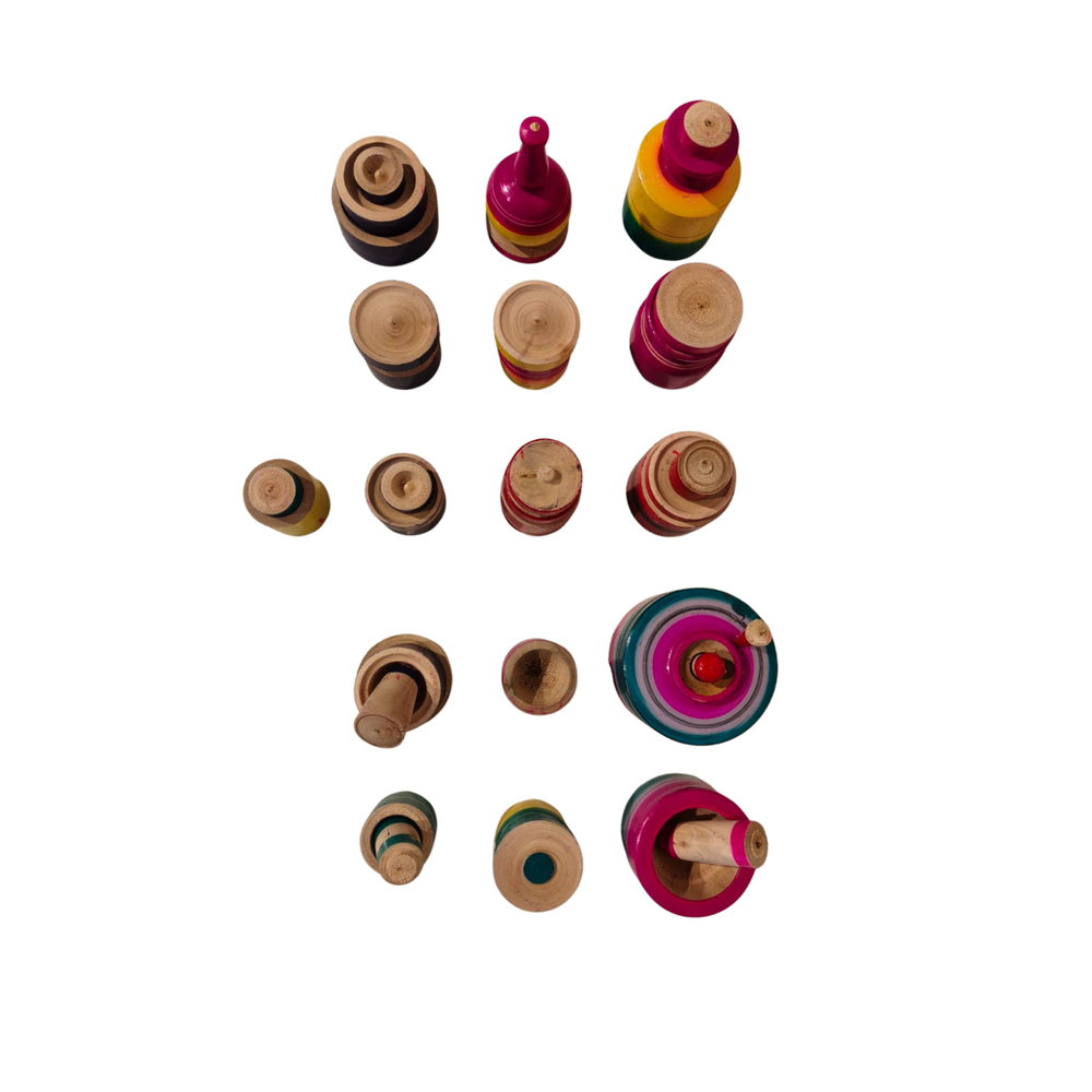 The hallmark of Etikoppaka craft lies in its eco-friendly process. The artisans use natural dyes derived from seeds, roots, and leaves, and coat the turned wooden objects with natural lacquer, applied using the “lac-turnery” technique. This gives each piece a glossy finish, vibrant color, and smooth texture, making the art both visually appealing and safe, especially for children.