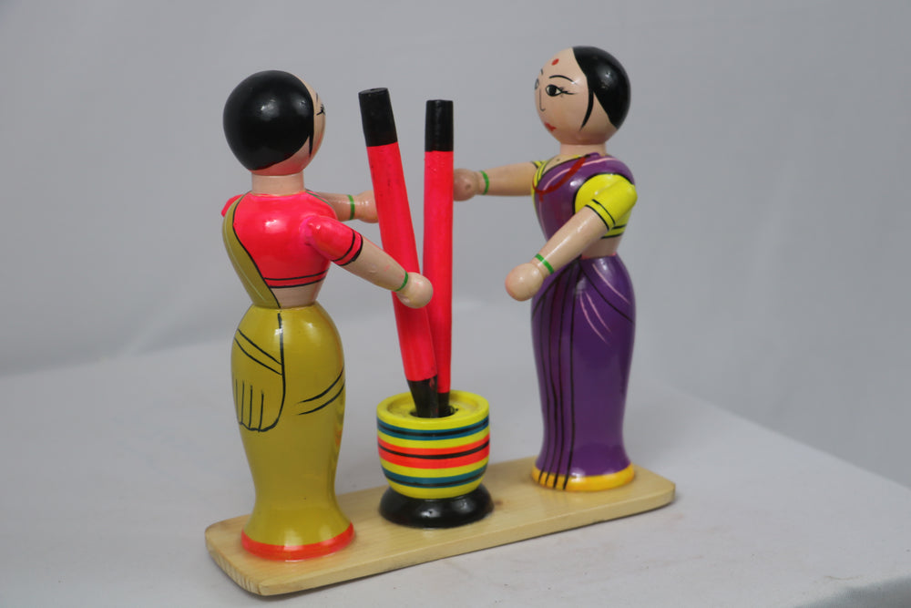 Channapatna handicrafts are a traditional form of wooden toy and craft making that originated in the town of Channapatna, Karnataka, India. This celebrated craft is often called "Gombegala Ooru" or "toy town." The process involves turning soft ivory wood on a lathe and then applying colored lacquer. A key feature is the use of non-toxic, natural dyes derived from vegetables, making the toys incredibly safe for children. The friction from the lathing process melts the lacquer, giving each item a vibrant, glossy, and seamless finish. This eco-friendly craft, protected by a GI tag, now includes a wide range of products from toys to home décor.