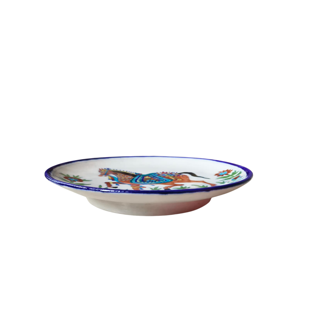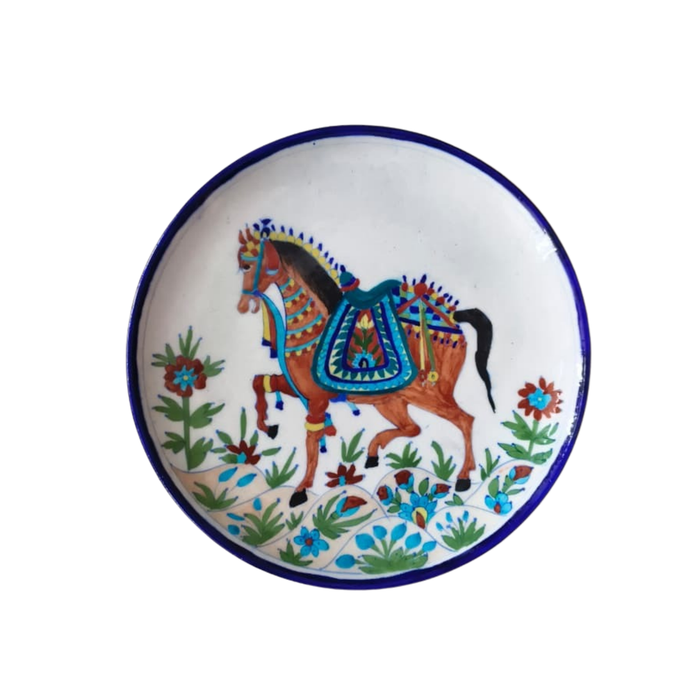 Blue Pottery of Rajasthan is one of India’s most distinctive and visually captivating traditional crafts, known for its striking cobalt blue designs and intricate floral motifs. Originating in Jaipur, this art form beautifully fuses Persian, Turkish, and Mughal influences, creating a timeless legacy of glazed ceramic work. Unlike other pottery styles, Blue Pottery is made from a unique quartz-based composition instead of traditional clay, making it lighter and more delicate. Artisans use a blend of quartz stone powder, glass powder, Multani mitti (Fuller’s earth), gum, and water to create the base, which is then glazed and fired at a low temperature.