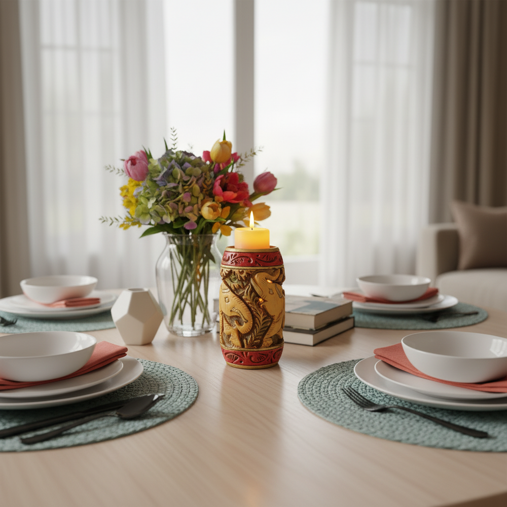 Each piece is meticulously carved from high-quality Sheesham (Indian Rosewood) or Mango Wood, known for durability and beautiful natural grain. The detailed hand-carved patterns showcase floral motifs, royal elephants, peacocks, and temple-inspired designs, capturing the essence of Rajasthani tradition and royal craftsmanship.