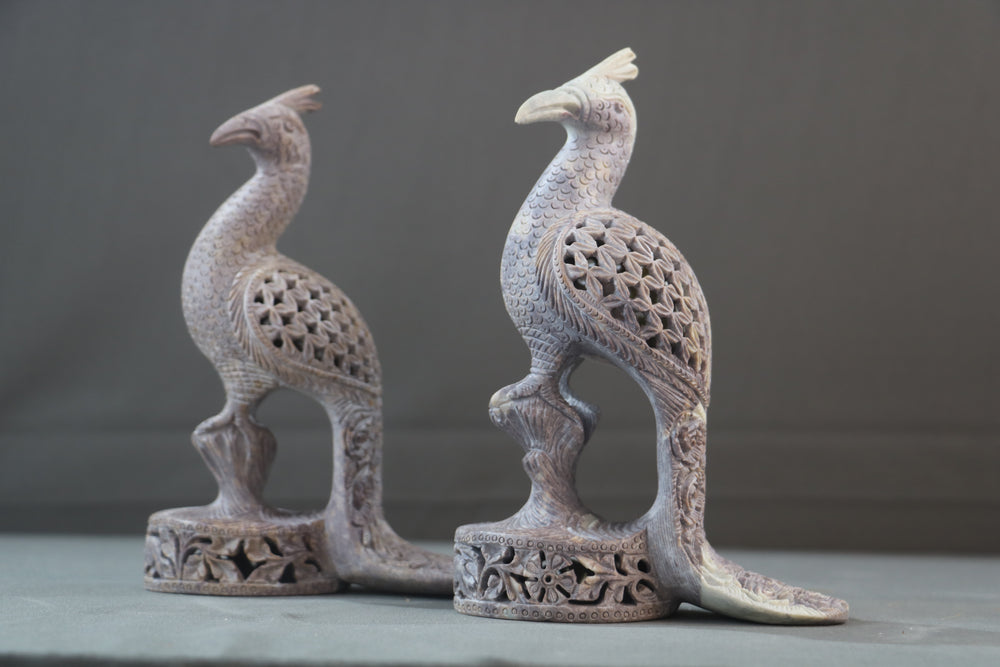 The stone is hand-chiselled to create delicate, symmetrical designs.
