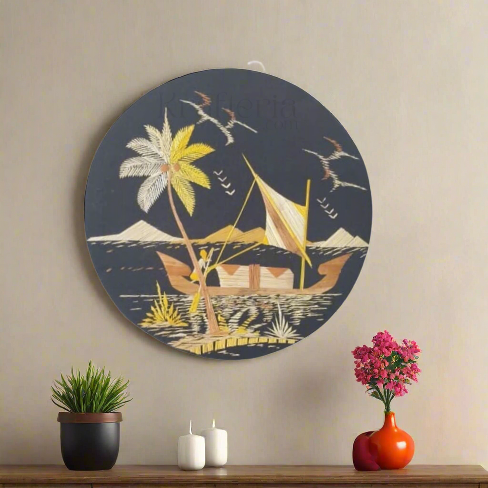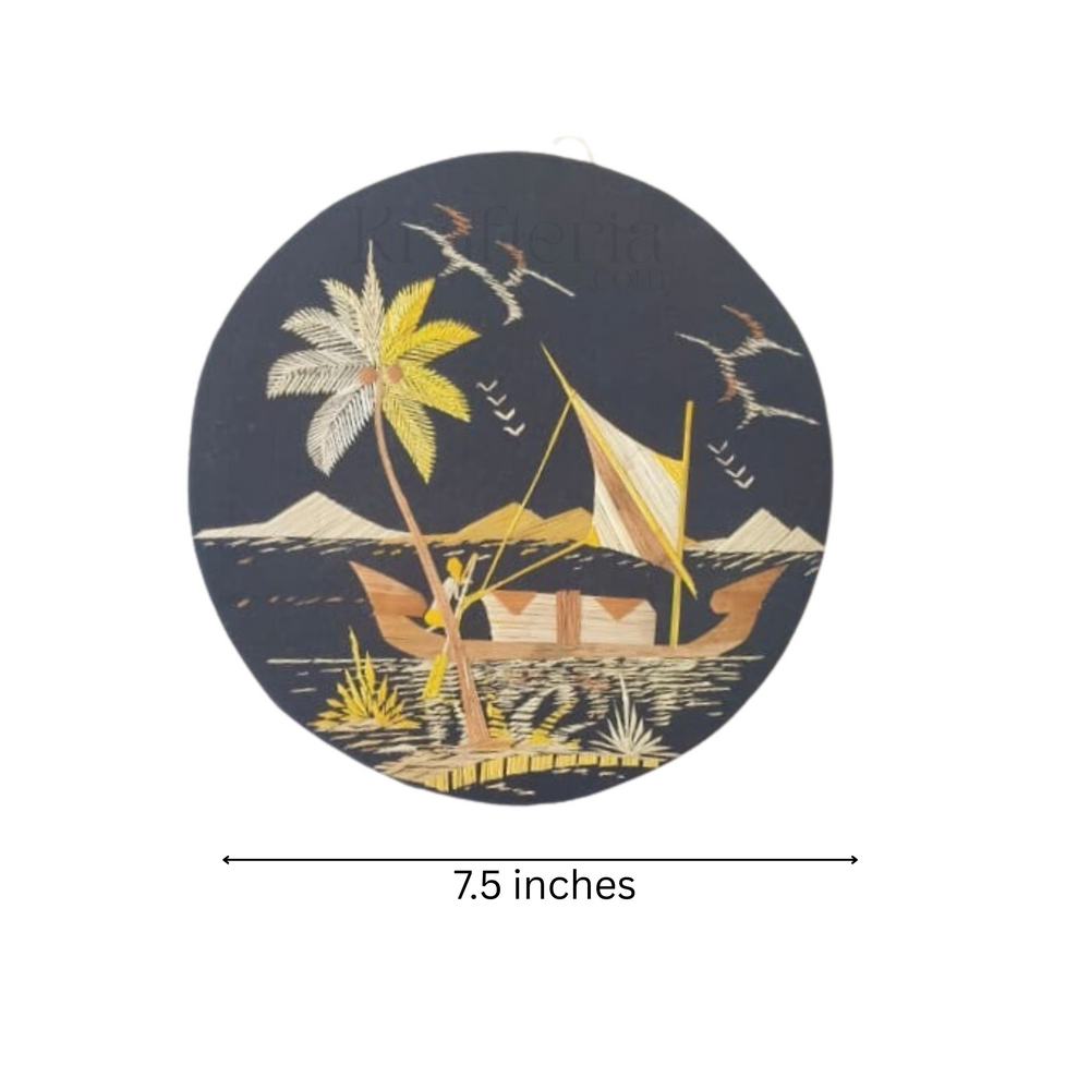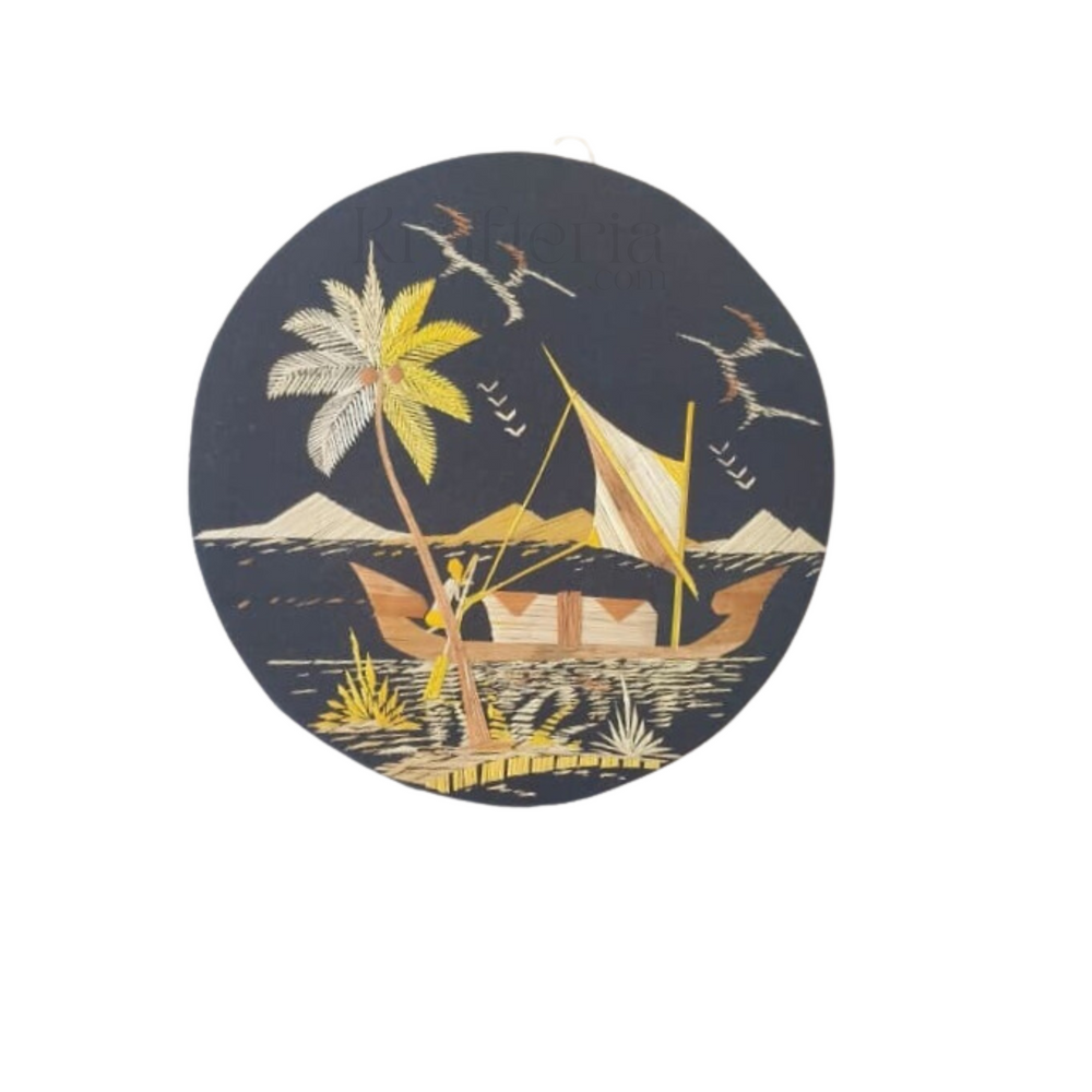 Artisans meticulously cut, shape, and paste thin strips of straw onto a base, forming detailed images of Kerala’s landscapes, temples, animals, Kathakali dancers, and scenes from village life. The straw’s natural sheen and golden hue lend the finished piece a subtle, elegant glow.
