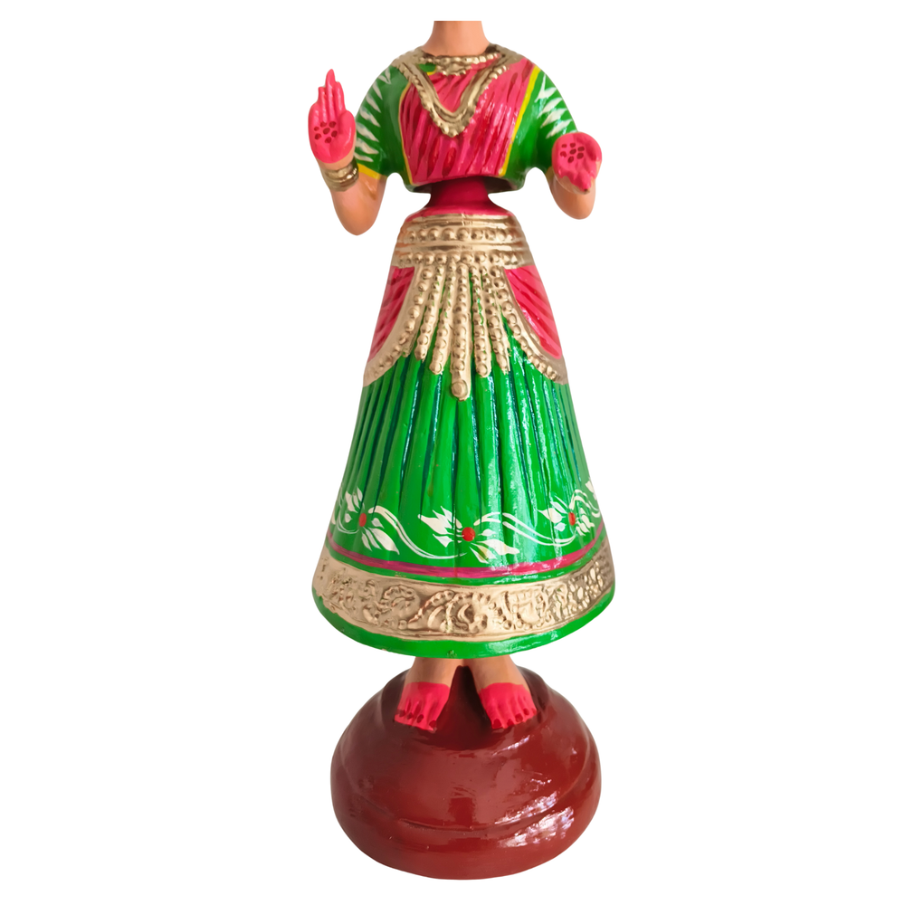 Kondapalli Bommalu are one of the most celebrated traditional wooden toys of India, originating from Kondapalli village in the Krishna district of Andhra Pradesh. These toys are handcrafted from a special softwood known locally as Tella Poniki, which grows in the nearby Kondapalli hills. The craft has a rich heritage dating back over 400 years, believed to have been introduced by migrant artisans from Rajasthan who brought with them unique wood-carving techniques. Each toy is made with meticulous skill, beginning with carving the wood into desired forms, followed by assembling, polishing, and finally painting with vibrant natural or vegetable dyes. The artisans, called Aryakshatriyas, have preserved this tradition for generations, passing it down as a hereditary craft. Kondapalli Bommalu are known for their lively themes inspired by mythology, village life, animals, birds, and deities, reflecting the cultural ethos of Andhra Pradesh. They are most prominently displayed during the festival of Sankranti and Navaratri, especially in the traditional “Bommala Koluvu” (doll arrangement). The toys are lightweight, eco-friendly, and crafted with an aesthetic that blends simplicity with folk charm.Kondapalli Bommalu represent not only the creativity of rural artisans but also a sustainable art form deeply rooted in Indian tradition. Over centuries, the craft has adapted while retaining its original soul, and today, these dolls are treasured as heritage collectibles and cultural symbols worldwide. They embody a timeless legacy where wood, color, and imagination come together to narrate the tales of Indian tradition, art, and spirituality.