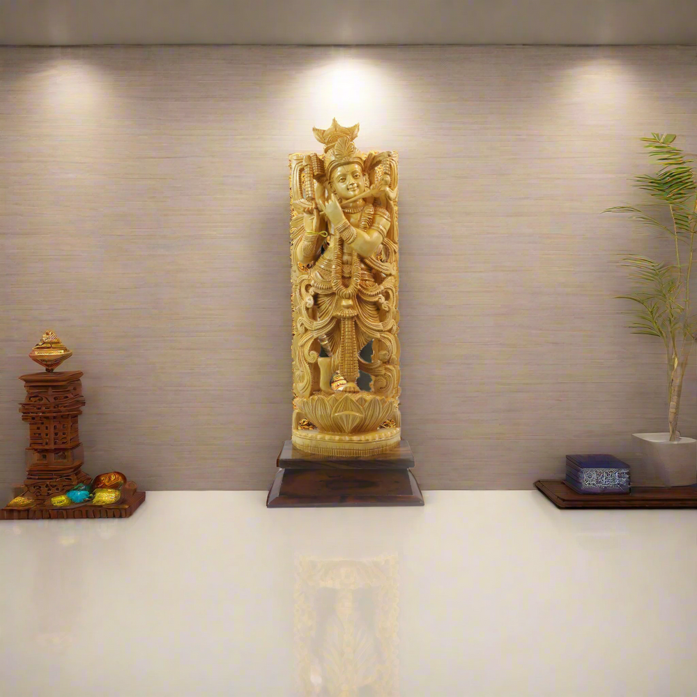 Karnataka Krishna Statue Wood 20.5"H 8'INCHES