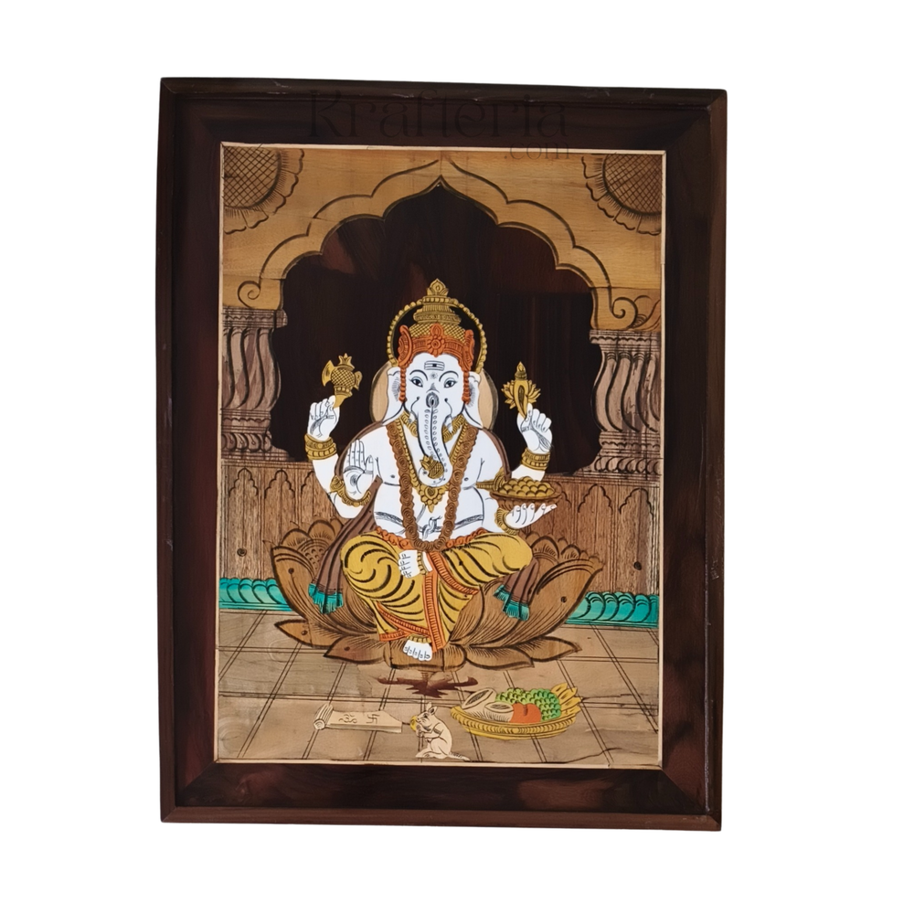 Mysore rosewood inlay involves creating intricate designs by embedding pieces of different colored wood, and historically, ivory, into a rosewood base.