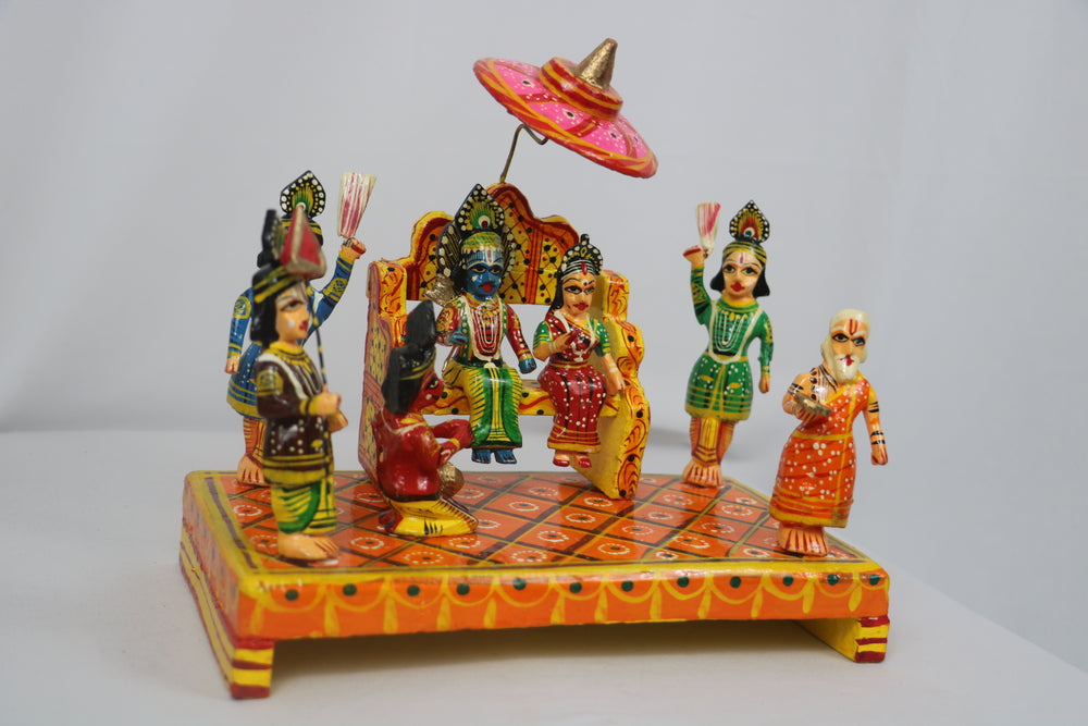 Wooden Lacquerware of Varanasi is a centuries-old craft known for its vibrant colors, intricate patterns, and smooth lacquered finish. This unique handicraft involves hand-turning softwood—typically eucalyptus or kadam—into toys, utensils, and decorative pieces on a lathe. After shaping, skilled artisans apply layers of natural lacquer and create detailed patterns using hand-held tools and natural dyes.