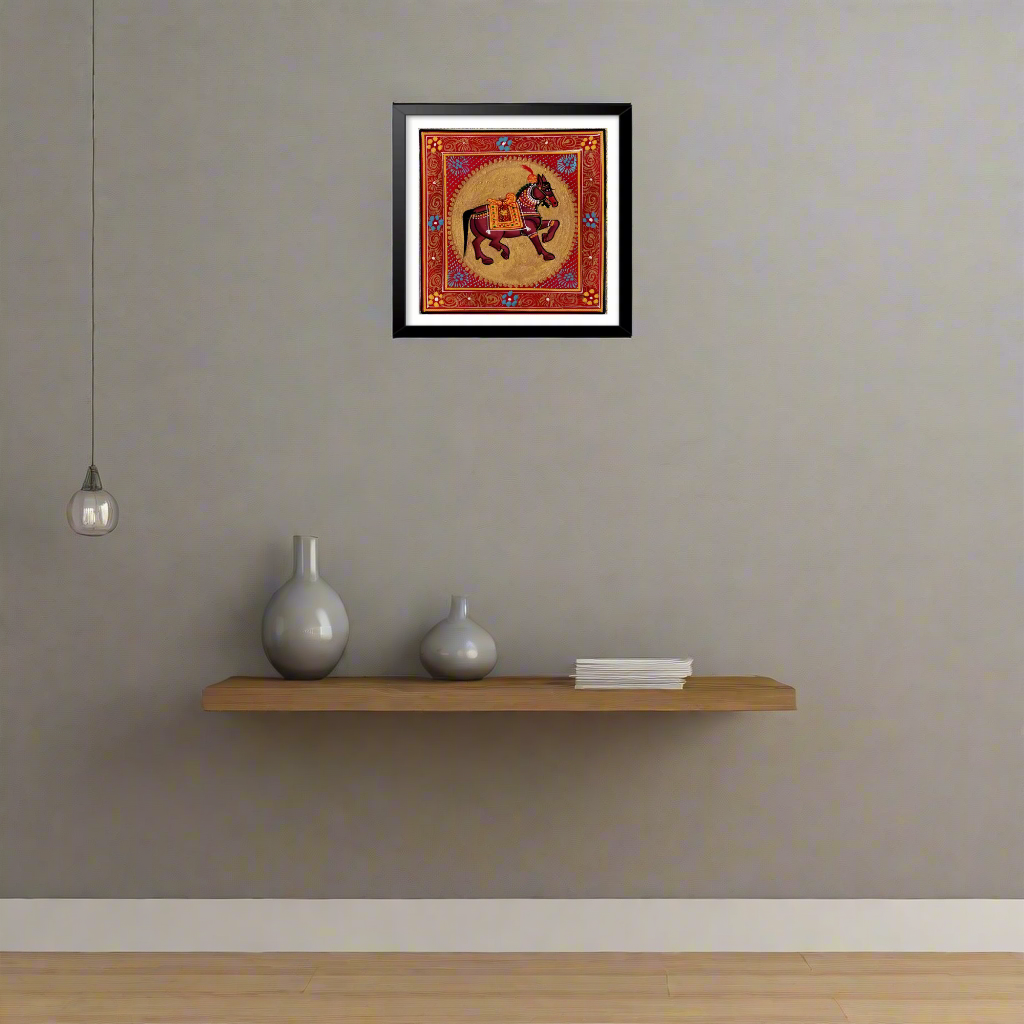 Rajasthani Painting is a rich and vibrant style of Indian miniature painting that flourished in the royal courts of Rajasthan from the 16th century onwards. Deeply rooted in Indian traditions, it portrays themes of mythology, epics, love stories, royal life, and folk culture. The paintings are known for their bold lines, bright colors, and intricate detailing. Natural dyes and pigments made from minerals, vegetables, and precious stones were traditionally used, which gives the art a lasting and luminous quality.