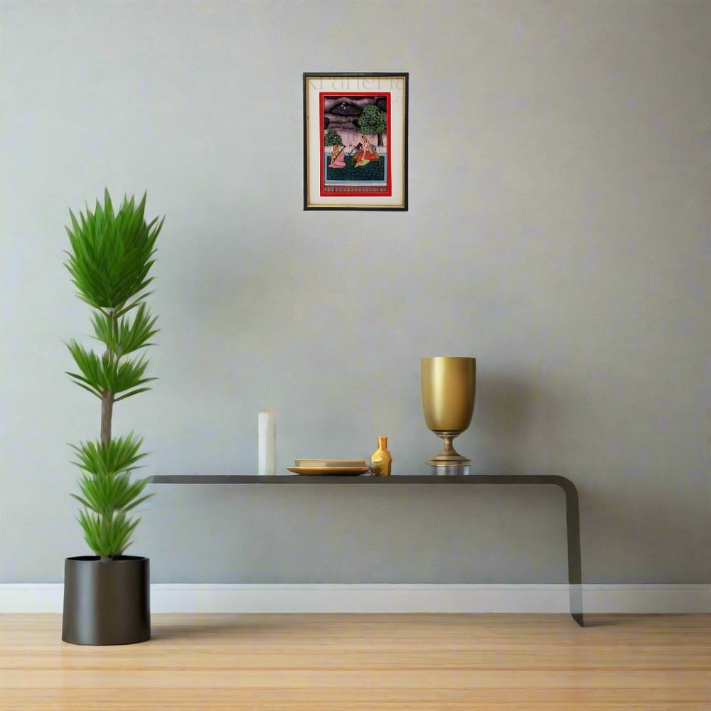 Rajasthani Painting is a rich and vibrant style of Indian miniature painting that flourished in the royal courts of Rajasthan from the 16th century onwards. Deeply rooted in Indian traditions, it portrays themes of mythology, epics, love stories, royal life, and folk culture. The paintings are known for their bold lines, bright colors, and intricate detailing. Natural dyes and pigments made from minerals, vegetables, and precious stones were traditionally used, which gives the art a lasting and luminous quality.