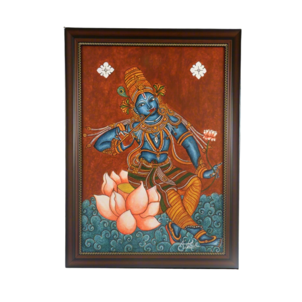 Krishna On Lotus Kerala Mural Painting