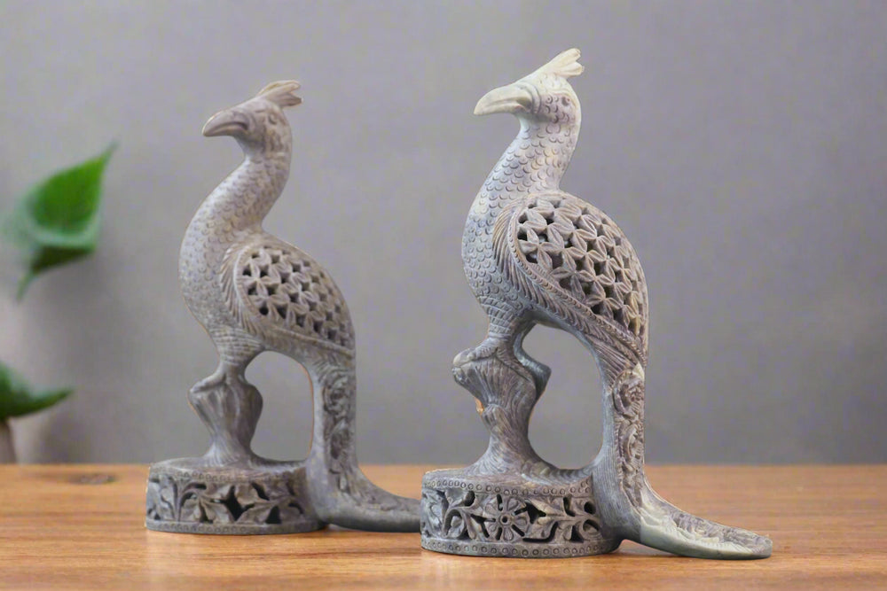 The stone is hand-chiselled to create delicate, symmetrical designs.