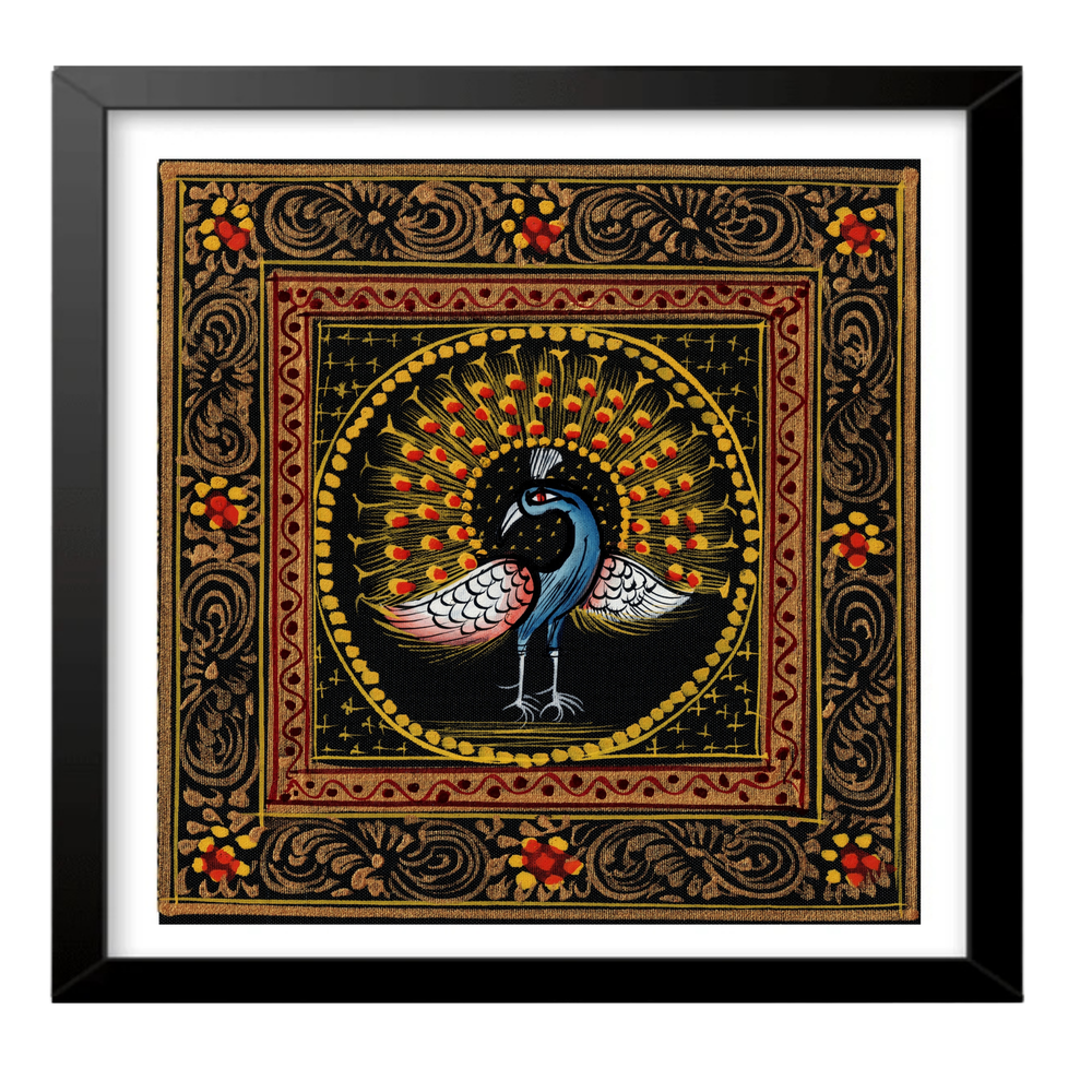 Rajasthani Painting is a rich and vibrant style of Indian miniature painting that flourished in the royal courts of Rajasthan from the 16th century onwards. Deeply rooted in Indian traditions, it portrays themes of mythology, epics, love stories, royal life, and folk culture. The paintings are known for their bold lines, bright colors, and intricate detailing. Natural dyes and pigments made from minerals, vegetables, and precious stones were traditionally used, which gives the art a lasting and luminous quality.