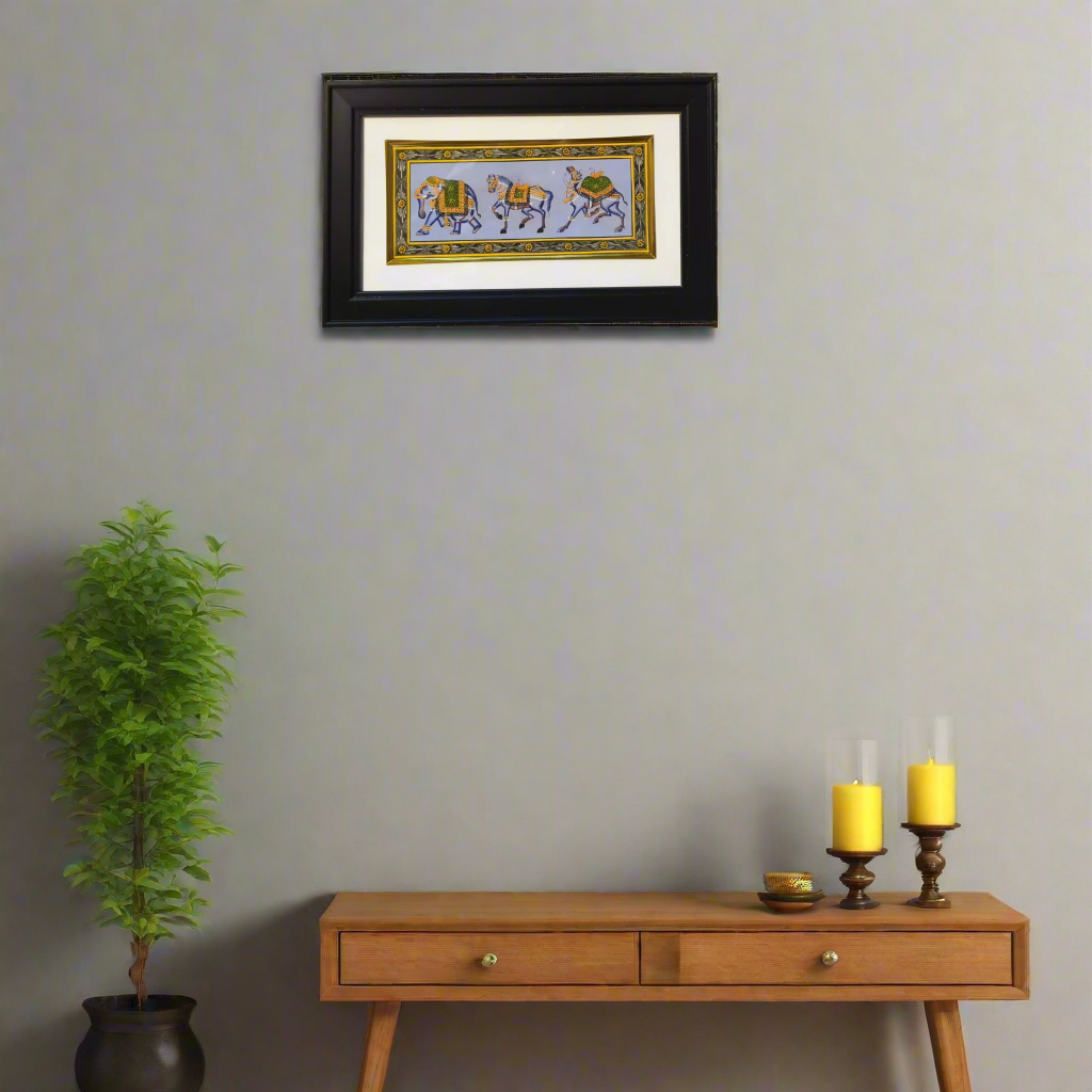 Rajasthani Painting is a rich and vibrant style of Indian miniature painting that flourished in the royal courts of Rajasthan from the 16th century onwards. Deeply rooted in Indian traditions, it portrays themes of mythology, epics, love stories, royal life, and folk culture. The paintings are known for their bold lines, bright colors, and intricate detailing. Natural dyes and pigments made from minerals, vegetables, and precious stones were traditionally used, which gives the art a lasting and luminous quality.