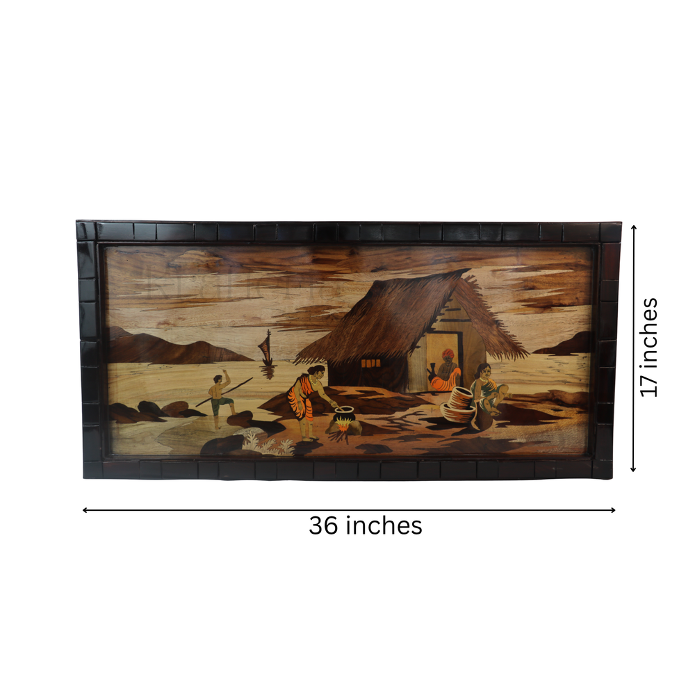 Fishing Man & Women Cooking Wood Inlay Mysore