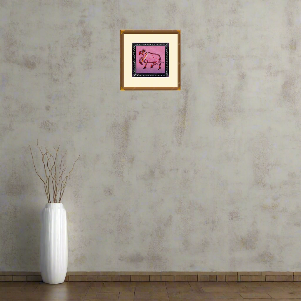 The themes of Pichwai paintings are closely tied to the Pushtimarg sect and revolve around religious festivals such as Janmashtami, Annakut, Holi, Sharad Purnima, and Raslila. They feature detailed portrayals of Krishna playing with cows, gopis, or lifting the Govardhan hill, often adorned with lush lotus motifs, peacocks, and seasonal elements. Traditional Pichwais are made on handwoven cloth using natural dyes and pigments, including gold and silver, with fine brushwork and deep symbolic meaning.