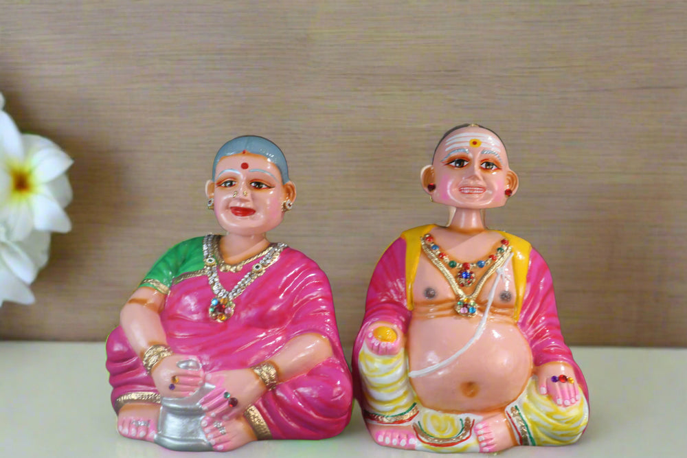 Bring home the timeless charm of Tamil Nadu’s rich cultural heritage with our handcrafted Thanjavur Thalayatti Bommai and Golu dolls. Made by skilled artisans using traditional paper mache and terracotta techniques, these dolls are perfect for Navaratri Golu displays, festive décor, or as collectible pieces of Indian folk art.