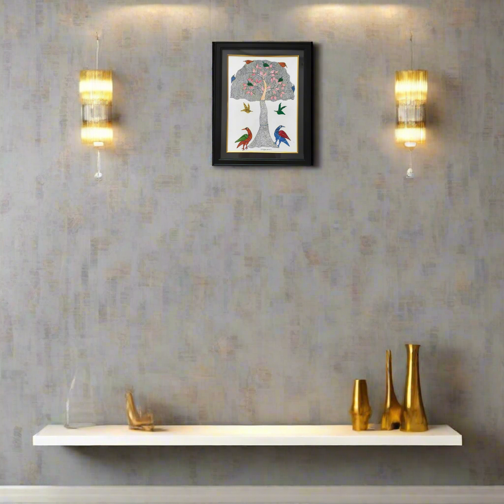 Gond Art, a vibrant and intricate form of tribal painting, originates from the Gond tribe, one of the largest indigenous communities of central India, particularly concentrated in the Dindori district of Madhya Pradesh. Traditionally drawn on walls and floors during festivals and rituals, Gond art has evolved into a celebrated form of contemporary folk expression, especially since the late 20th century.