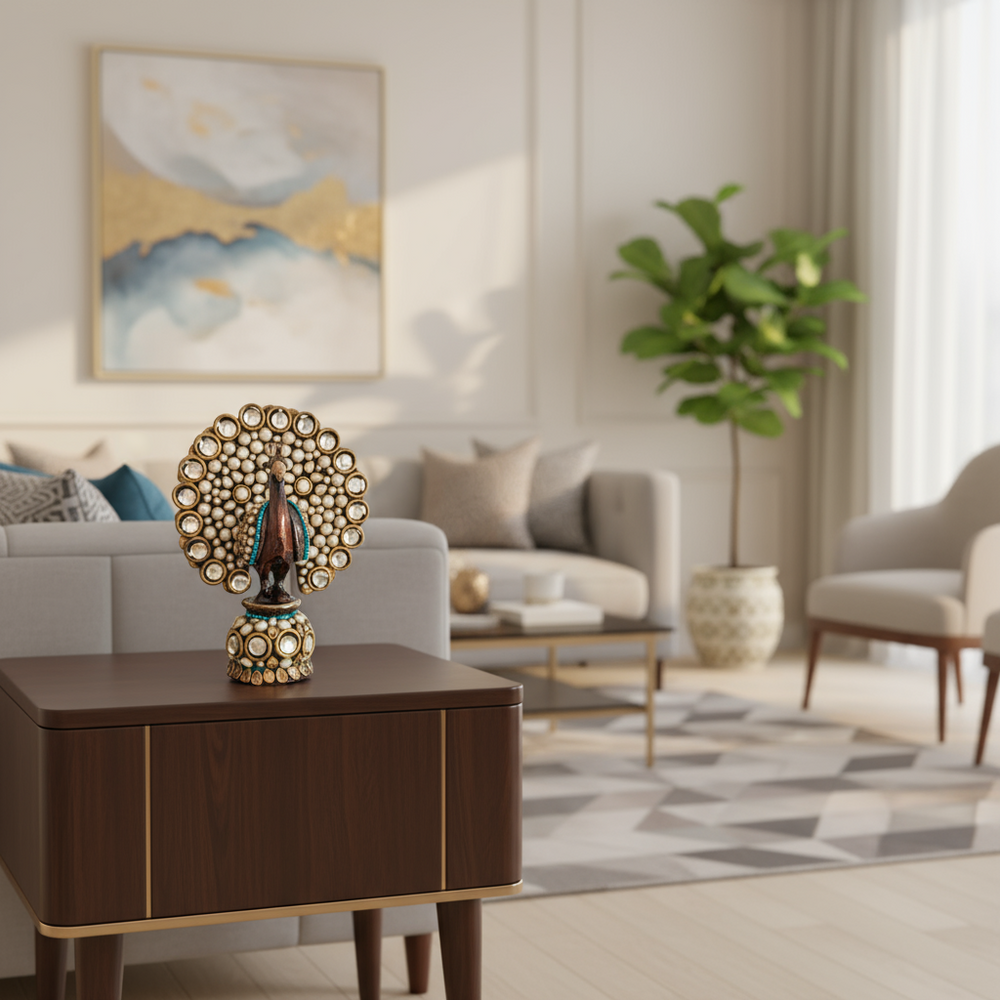 Each piece is meticulously carved from high-quality Sheesham (Indian Rosewood) or Mango Wood, known for durability and beautiful natural grain. The detailed hand-carved patterns showcase floral motifs, royal elephants, peacocks, and temple-inspired designs, capturing the essence of Rajasthani tradition and royal craftsmanship.