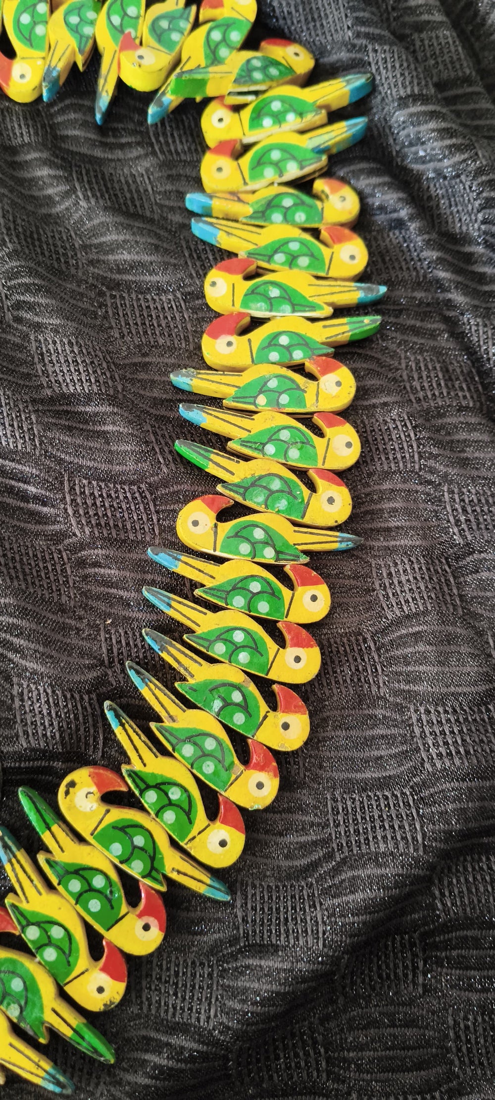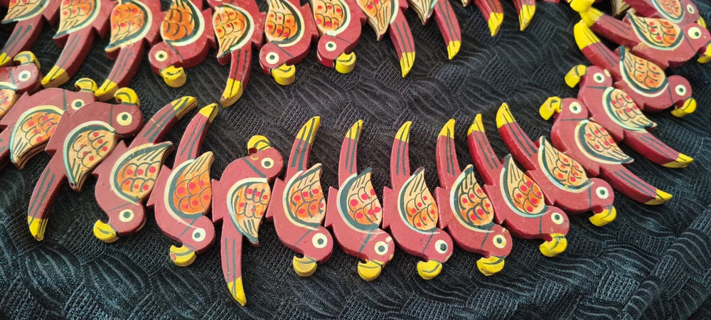 The traditional motifs often include floral designs, animals, birds, and geometric patterns. Bright red, yellow, green, and black are commonly used colors, which give the products their eye-catching appeal. The craft is both eco-friendly and sustainable, using locally sourced wood and non-toxic materials.
