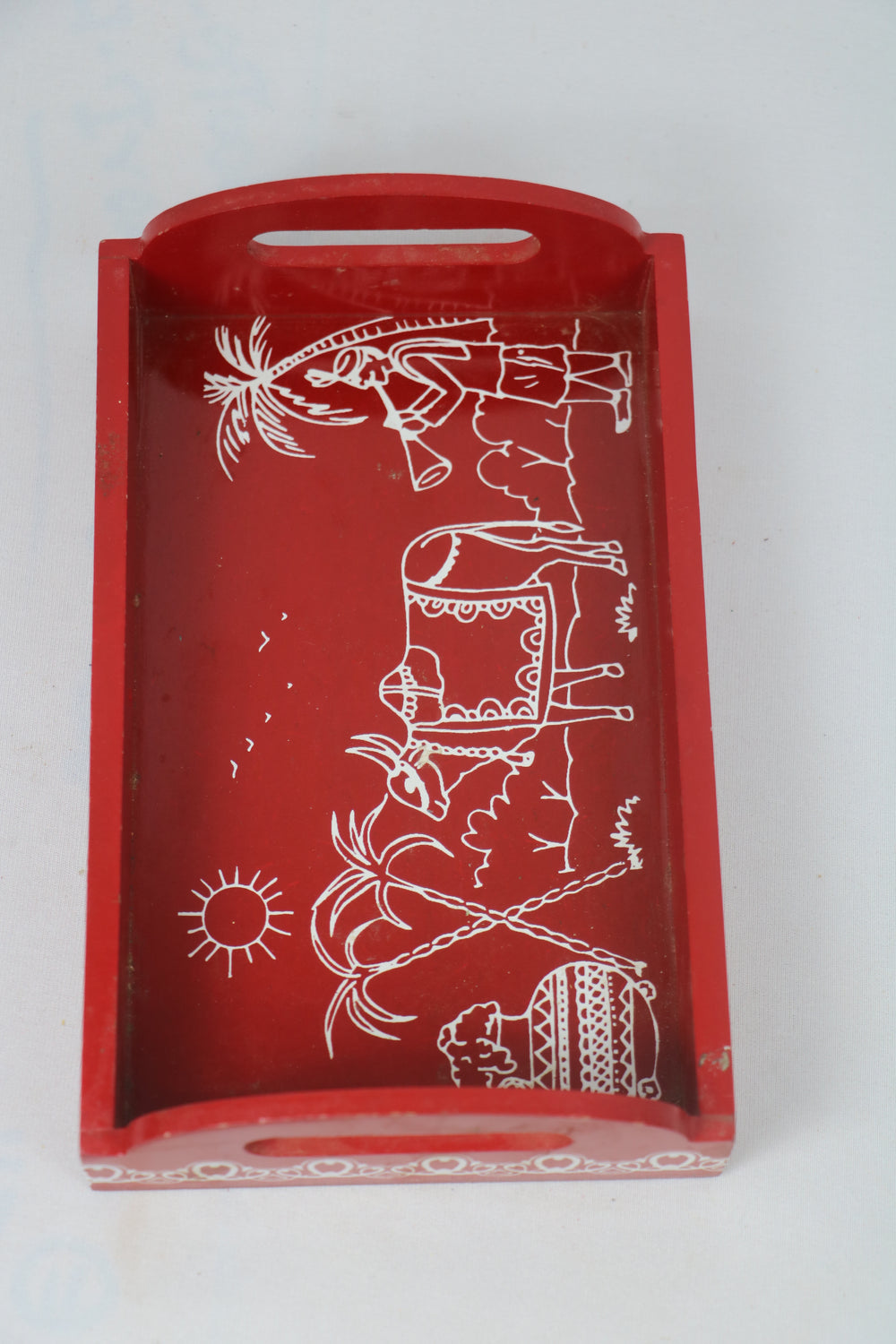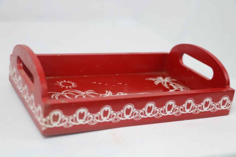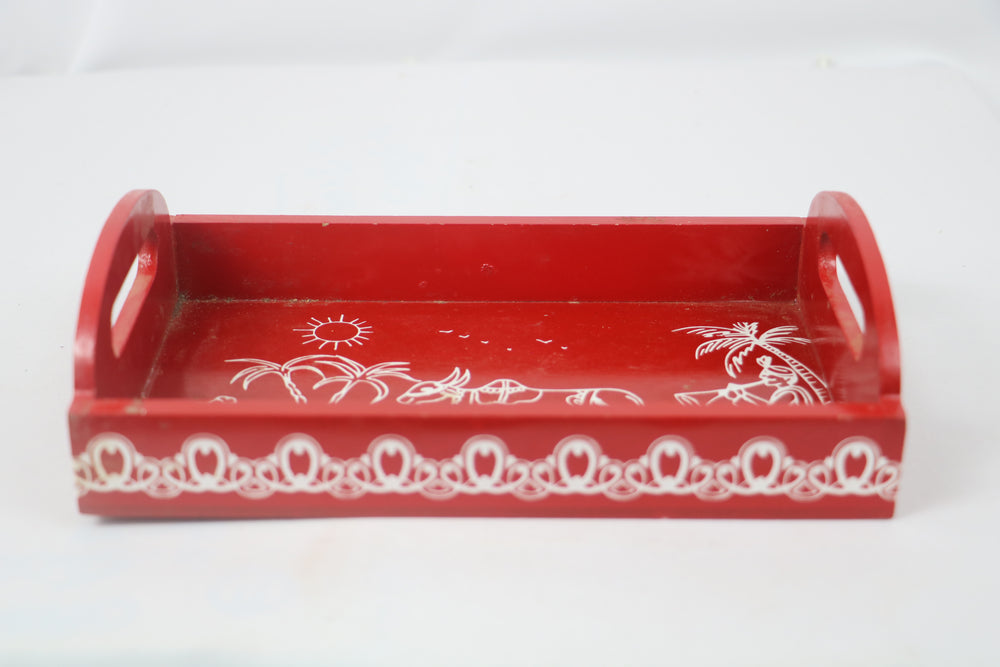 Wooden Hand Painted Cow Trays Red