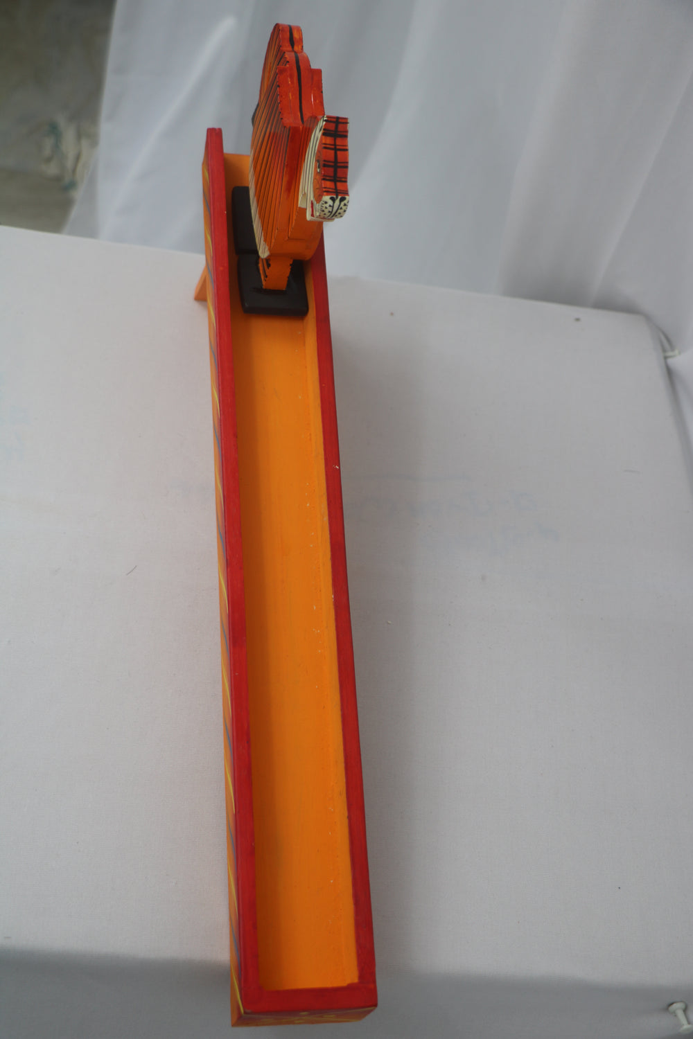 The traditional motifs often include floral designs, animals, birds, and geometric patterns. Bright red, yellow, green, and black are commonly used colors, which give the products their eye-catching appeal. The craft is both eco-friendly and sustainable, using locally sourced wood and non-toxic materials.
